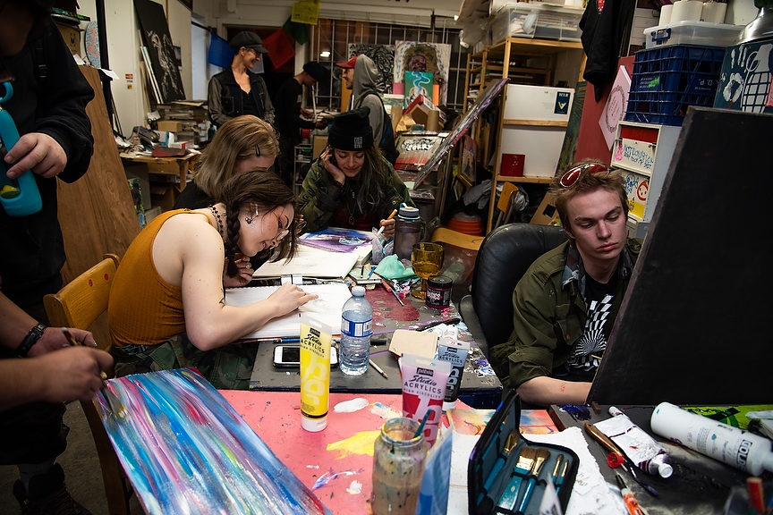 A group of young artist work in Rumble house in Calgary on Wednesday, March 20, 2019. WHYANDMORE. (Photo by Jesse Boily/SAIT)