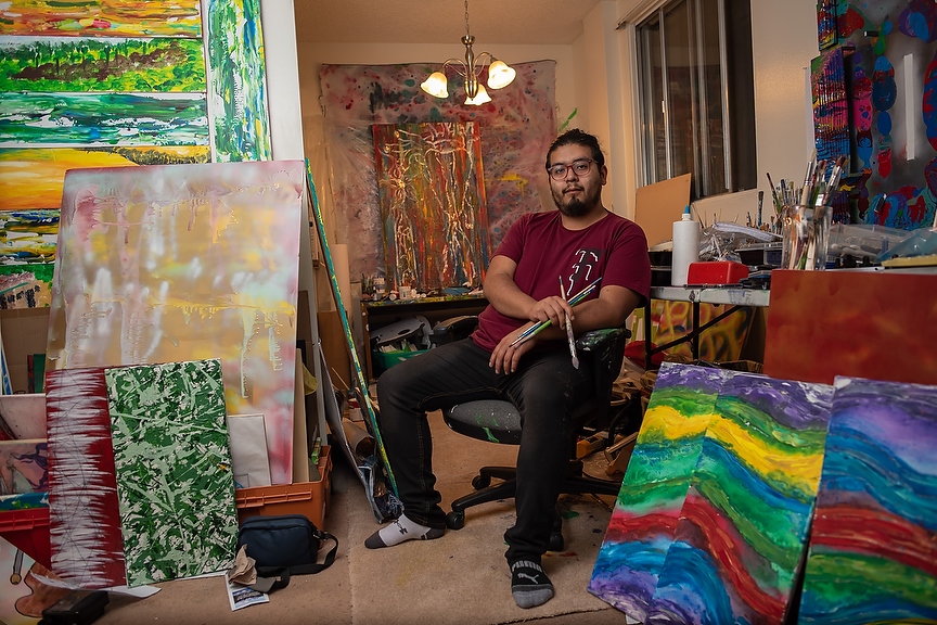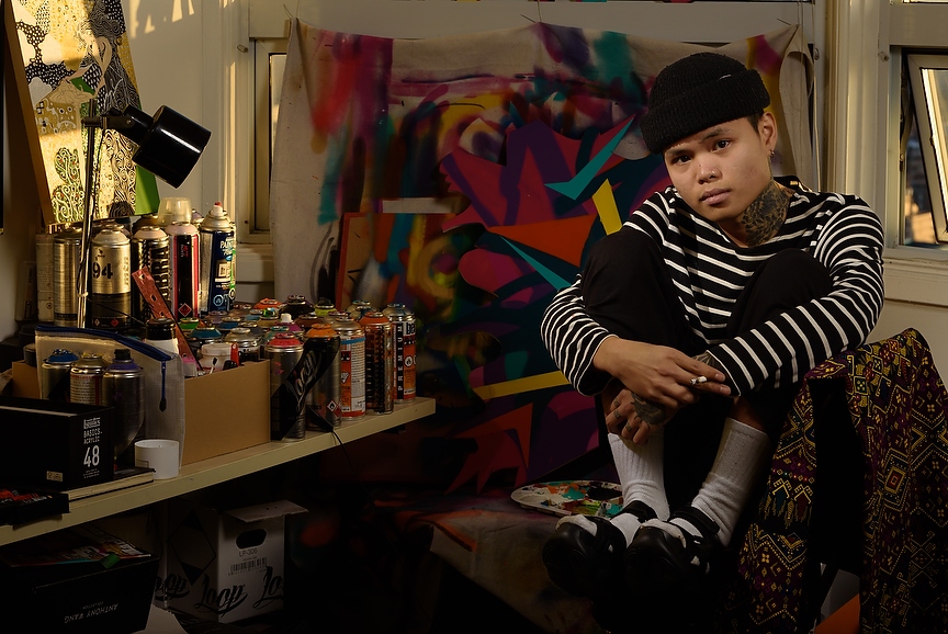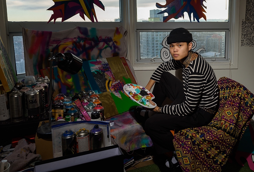 Harvey Nichol poses for a portrait at his home studio in Calgary on Monday, Jan. 27, 2020. Nichol grew up in Tondo, in the city of Manilla, where he describes the neighbourhood like the Compton of the Philippines. Moving to Canada in 2013 he has since began creating art has been selling his art for the past 2 years. (Photo by Jesse Boily/The Press)