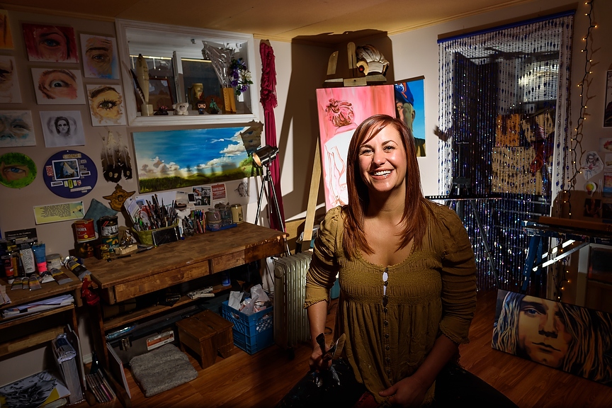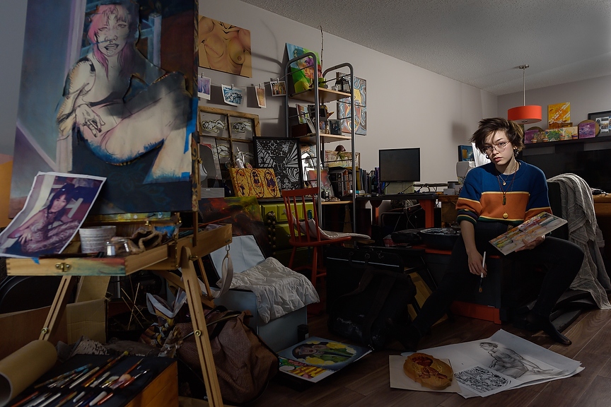 Rickee Lee sits for a portrait at her home studio in Calgary on Friday, Nov. 8, 2019. Lee works across many mediums, from painting to glass blowing. She first started painting with her mother and then decided to pursue going back to school and is now attending the Alberta University of the Arts. (Photo by Jesse Boily/The Press)