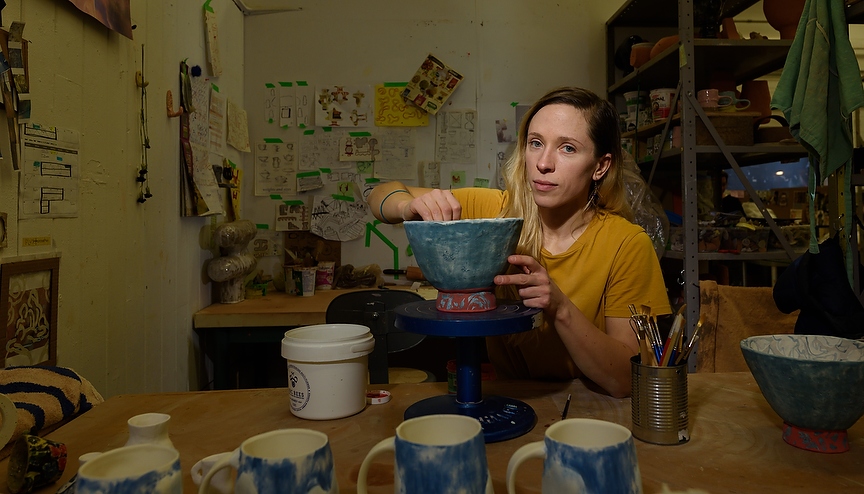 Katie Romansky, a fourth year ceramics student, poses for a portrait in her studio at the Alberta University of the Arts in Calgary on Friday, Nov. 29, 2019. WHYANDMORE. (Photo by Jesse Boily/The Press)