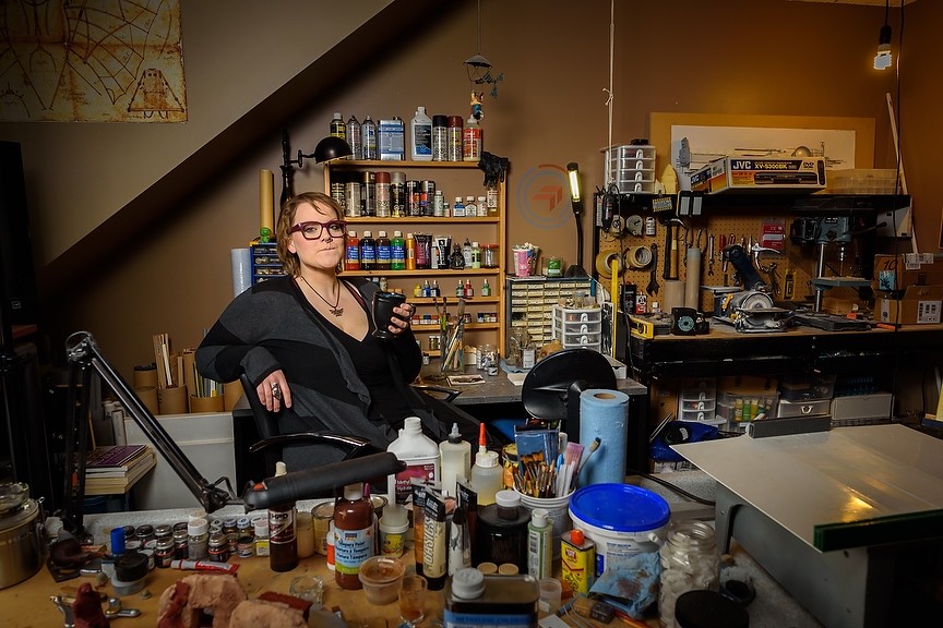 Rennie Poynton poses for a portrait in her home studio in Calgary on Thursday, Feb. 6, 2020. Poynton does a mixture of mediums including painting and sculpture. Her work is inspired by high fantasy and things like Heavy Metal magazine. (Photo by Jesse Boily/The Press)