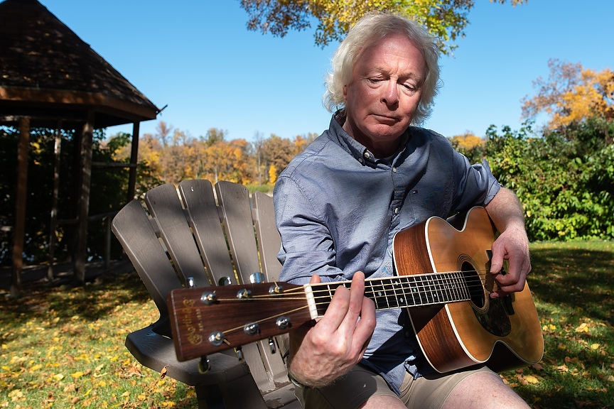JESSE BOILY / WINNIPEG FREE PRESS Dan Donahue, a music producer and folk musician of the '70s, plays a song in his backyard “sanctuary “ on Friday. Friday, Sept. 25, 2020. Reporter: Dave Sanderson