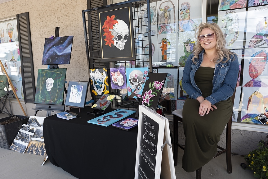 Beaverlodge local Sierra Smith was selling her art at the Beaverlodge Art Walk in Beaverlodge, Alta. on Friday, June 10, 2022. The first year of the event say artists, musicians, and artisans from all over the peace region sell their art. The event also had live music and a beer gardens. (Photo by Jesse Boily)