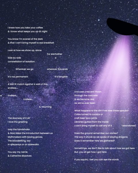 I don’t think it’s about the spaces Rather, what we bring to them What we get from them & what happens when they are taken away I think a lot about where I have been most myself Comfortable connecting All of this complex completeness Come as you are, to hell